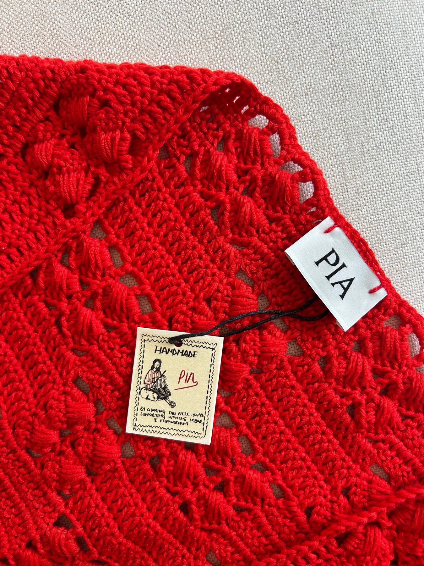 This refined Pia accessory is crafted entirely by hand, showcasing timeless elegance in every knitting. With its delicate openwork details and drape. Whether worn in the hair, around the waist, or styled at the neckline. Versatile and effortlessly chic, it elevates any look with understated sophistication.